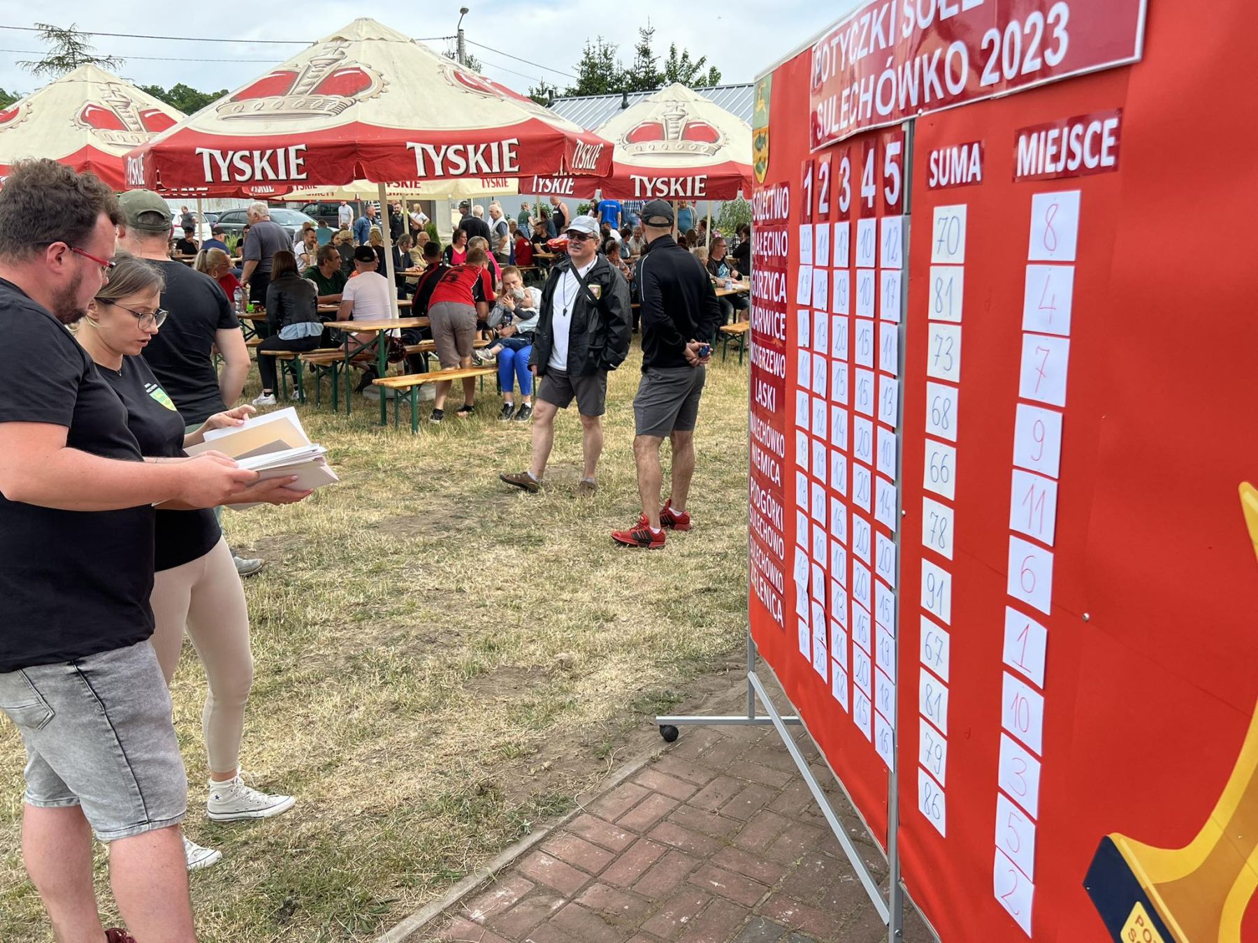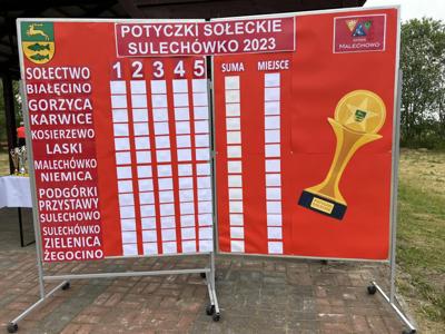 Galeria zdjęć przedstawia uroczyste otwarcie potyczek przez Wójta Gminy oraz Sołtysa sołectwa Sulechówko, odprawę sędziów z kapitanami drużyn, pokaz konkurencji, zawodnicy pokonują tor przeszkód z miotłą tocząc piłkę, bieg z łopatą, rzuty warzyw do wiadra, wyścig drużynowy z noszami, toczenie opony, zawodnicy pokonują tor sprawnościowy ze skrzynkami, jazda na rowerze trójkołowym, rzut kaloszem przez sołectwa. Moment wręczenia nagród i dyplomów, pamiątkowe zdjęcia zespołów.