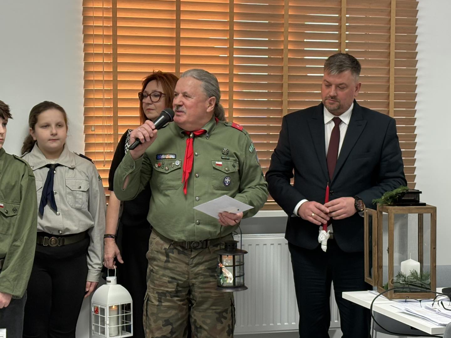 Ogień ten symbolizuje nadzieję, pokój i braterstwo. To wyjątkowe wydarzenie wpisuje się w coroczną tradycję, łącząc harcerzy z różnych części świata w duchu pokoju i miłości. Podczas sesji Komendant Gminny Związku Drużyn ZHP Marek Jarosz przekazał również dyplom oraz Srebną Honorową Odznakę Przyjaciół Związku Harcerstwa Polskiego Pani Barbarze Chylewskiej, Dyrektorce Zespołu Szkół w Ostrowcu, w uznaniu za okazaną życzliwość, wsparcie oraz zaangażowanie w działania na rzecz harcerstwa.