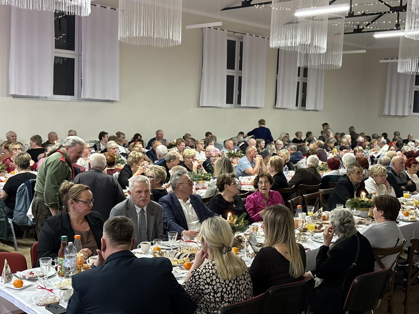 Nie zabrakło również tradycyjnego dzielenia się opłatkiem, symbolizującego pojednanie, miłość i wzajemną życzliwość. Wspólne chwile przy świątecznych potrawach były okazją do rozmów, uśmiechów oraz budowania jeszcze silniejszych więzi w społeczności seniorów.