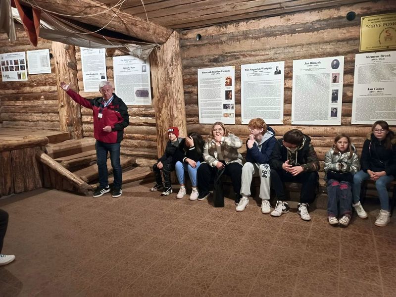 24 października 2022 r. uczniowie klas IV- VIII wybrali się na wycieczkę do Centrum Edukacji i Promocji Regionu na Kaszubach. To wyjątkowe miejsce, gdzie można poznać kulturę Kaszub oraz uczestniczyć w lekcjach historii połączonych ze zwiedzaniem obiektów. Pierwszą atrakcją była lekcja historii na żywo. Zagroda Trapera z Kanady, Dom Powstańca Polskiego z Adampola, wagon transportujący wywożonych na Sybir zesłańców - to obiekty, których nie da się zapomnieć. Oprócz możliwości poznania tragicznych dla Polaków rysów historii, Szymbark zapewnił młodzieży wiele ciekawych i wesołych atrakcji.